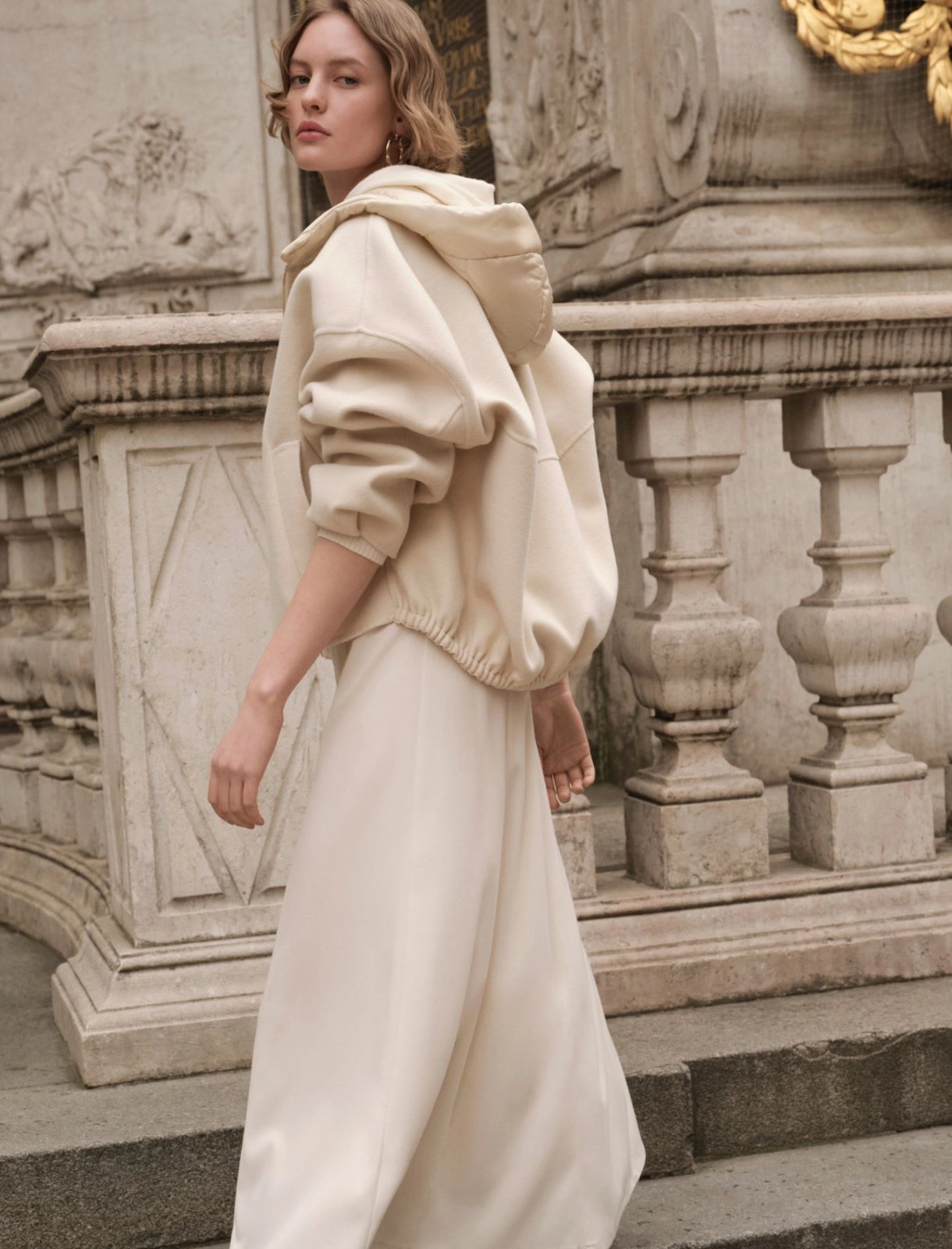 Follow the seasonal trend and don this double bomber jacket to put an informal spin on autumn. Contrasting technical fabric is used for the hood and details.